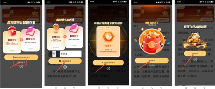 1.点击开启夺宝之旅,阅读小说可增加夺宝活动奖励进度