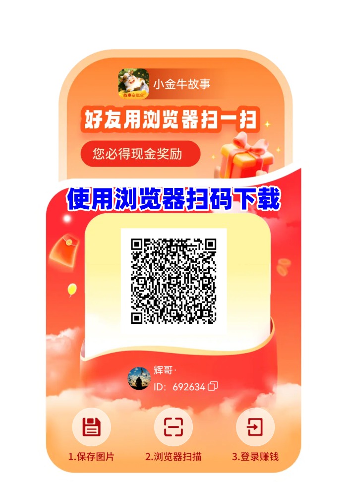 截图二维码保存相册,浏览器扫码下载小金牛故事APP